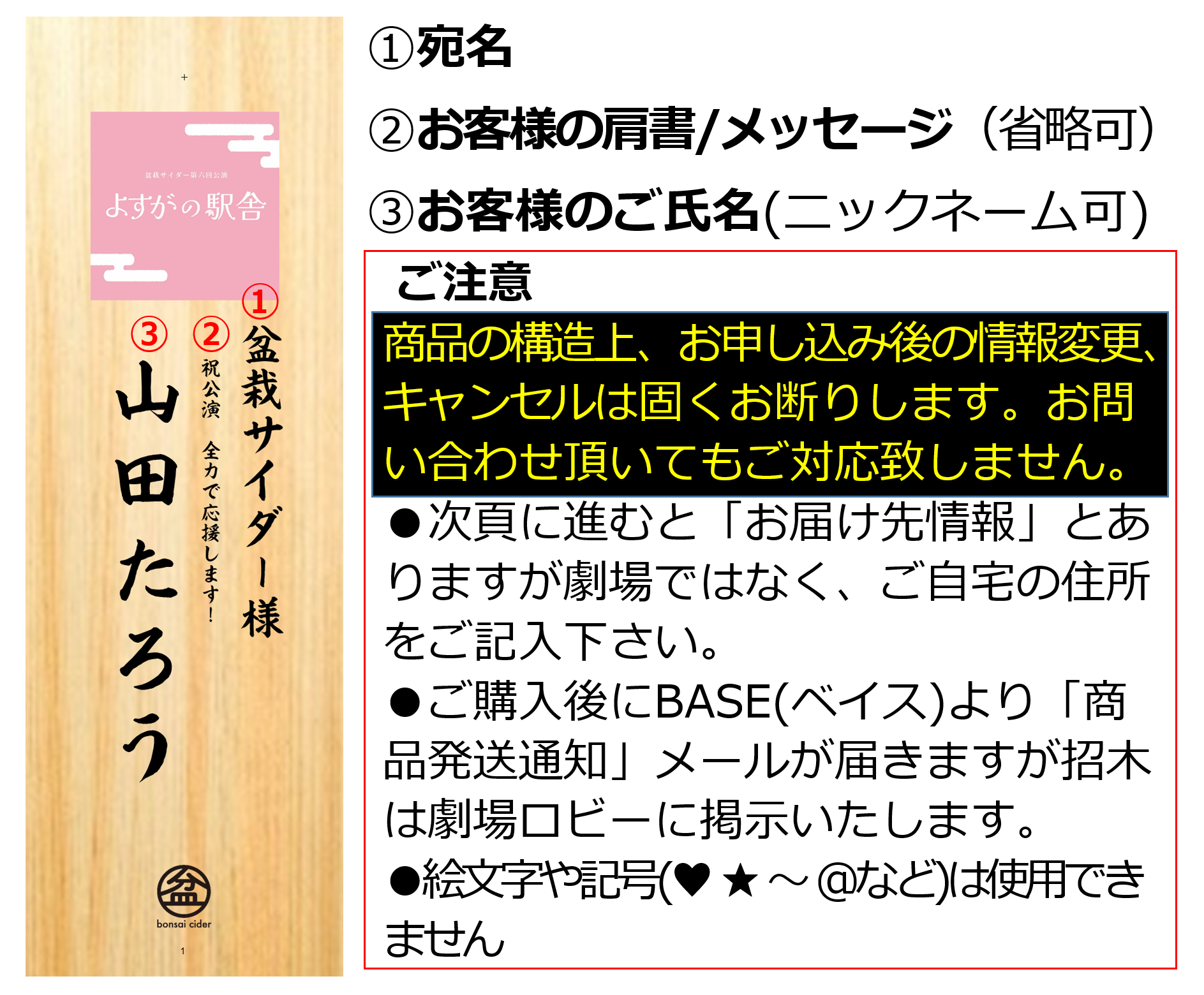 ※お申し込み後の文字情報の変更は出来ません。
