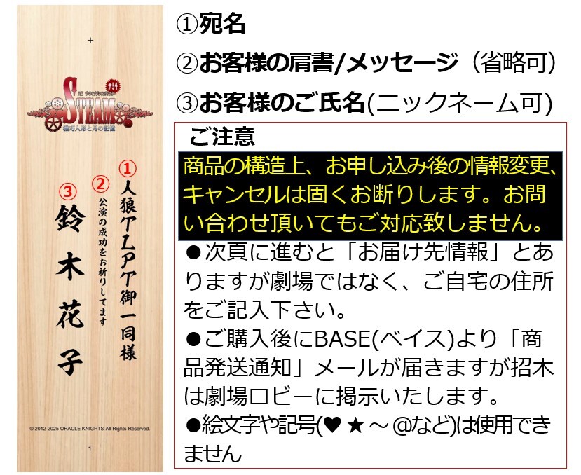 ※お申し込み後の文字情報の変更は出来ません。