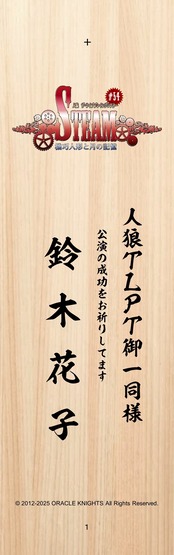 【プレミアム13,000円】人狼 ザ・ライブプレイングシアター 13周年記念公演 #54:STEAM 機巧人形と月の記憶 招木