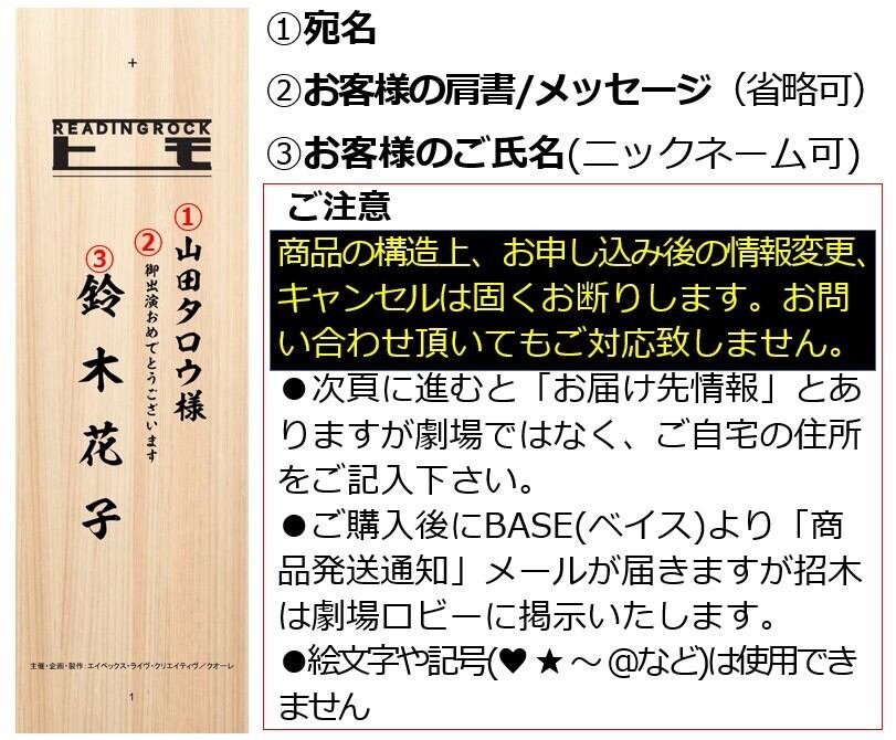 本公演は安全上の理由からお客様からの祝い花を禁止させて頂きます。