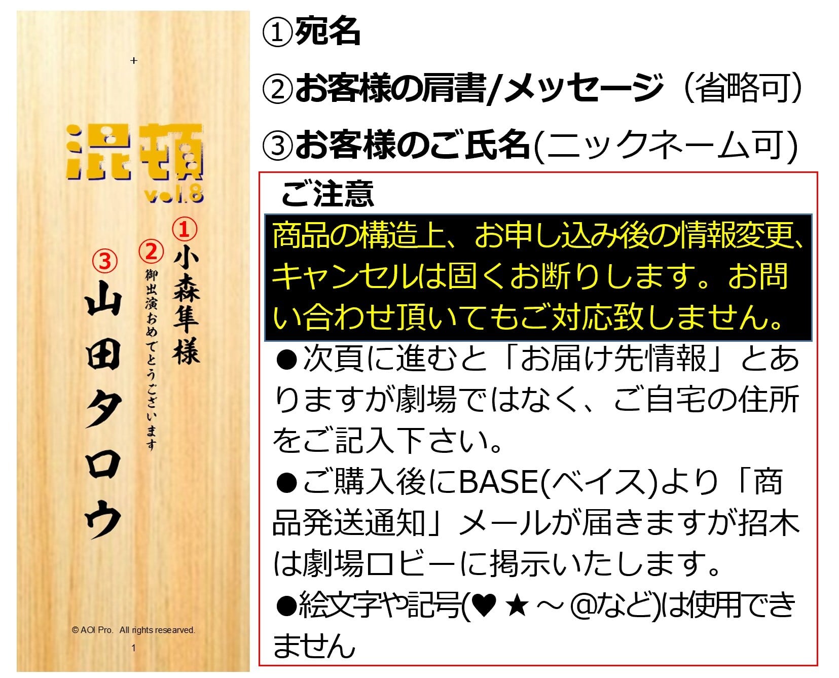 ※次のページに進むと「お届け先情報」の入力が必要になりますが、劇場住所ではなくご購入者様の情報をご入力ください。招木は公演会場にお届けします。