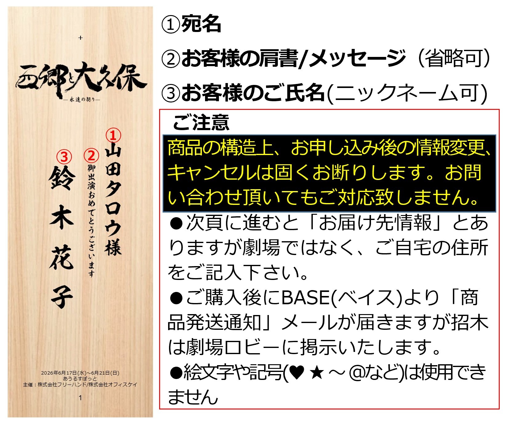 ※招木の掲出方法(並び順など)は公演主催者が決めさせて頂きます。