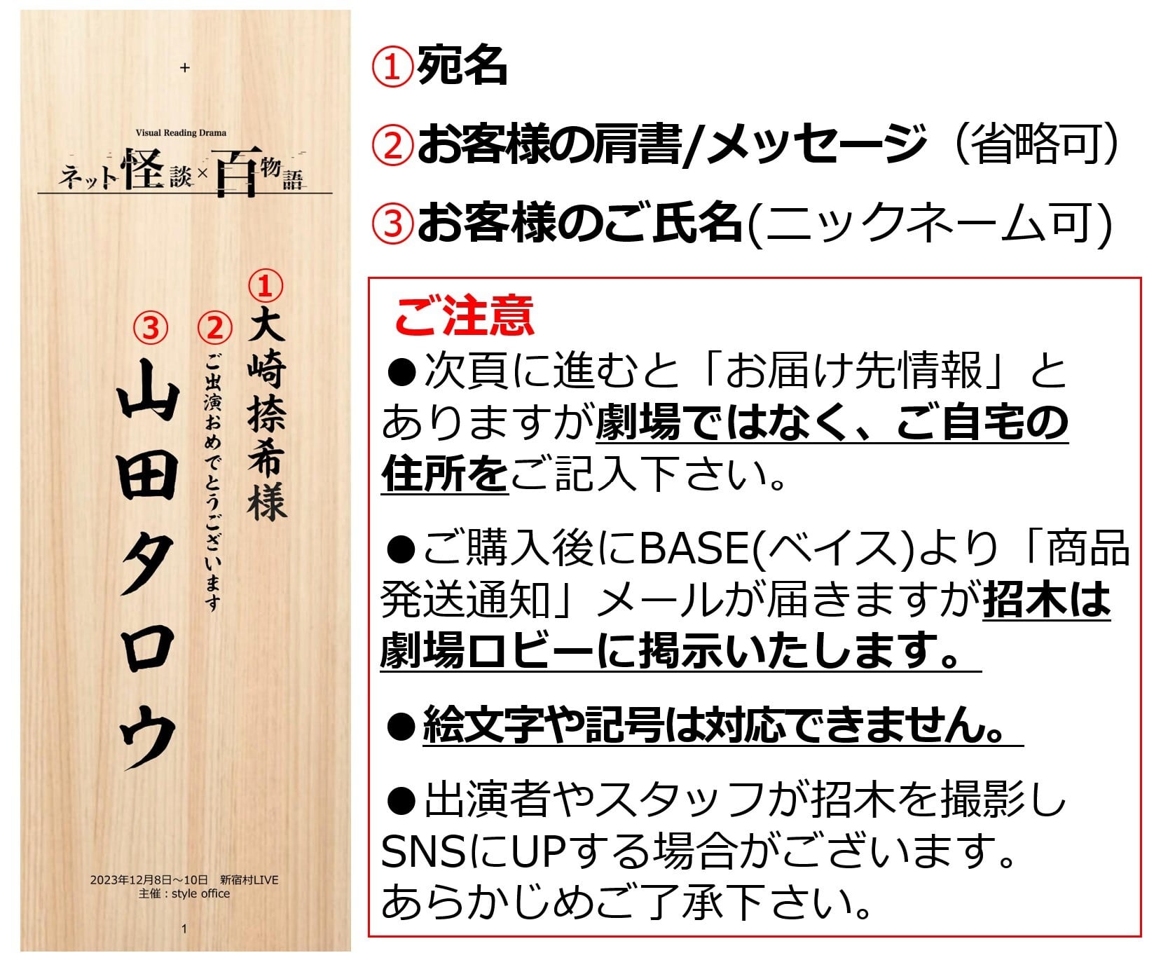 ※出演者やスタッフ、お客様が招木を撮影しSNS他にUPする場合もございます。